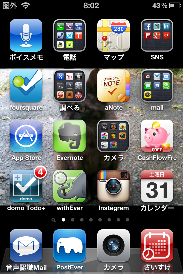メジャーなアプリであるCamera+やProCameraも入れているのだが、ドックに入れているのは標準のカメラアプリとなっている。