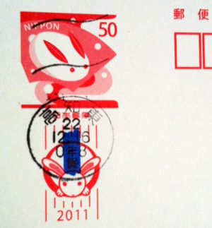 年賀状はご存知のとおり、切手部分の下に「年賀」と書いておくと元日に配達される、というサービスだ。